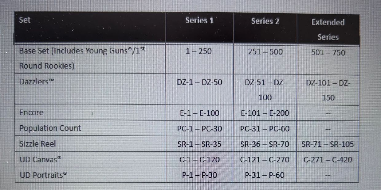 1 Base Set - Clear Cut Parallel Card, UD Canvas - Black & White Parallel Card or Encore - Blue Parallel Card