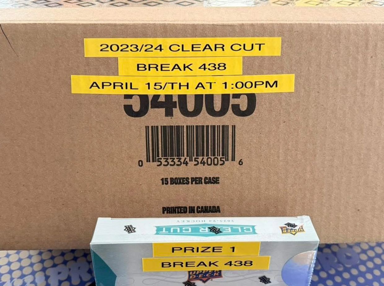 Break #438 will feature a 15 box mini case of 2023-24 Upper Deck Clear Cut.